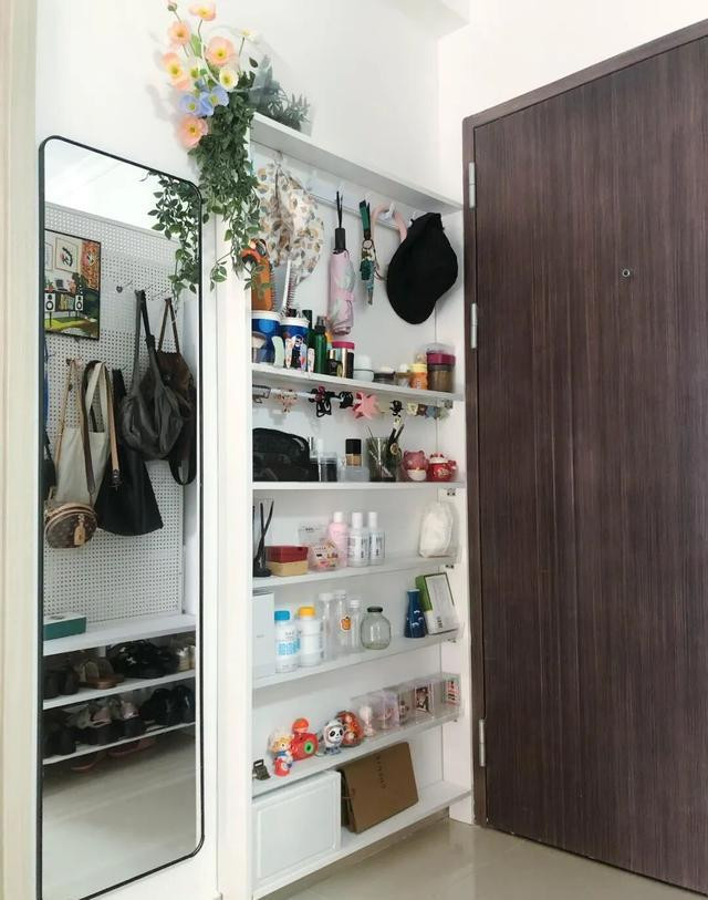 无需钻孔,用无痕挂钩或强力胶贴就能上墙,放钥匙、围巾、小包,甚至是一些常用化妆品,瞬间多出一个玄关柜的容量。