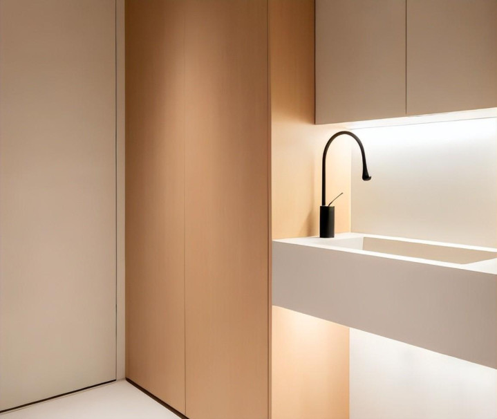 洗手台放在玄关位置,既能实现干湿分离,我们洗漱也方便,每天回家后就能顺手洗手。