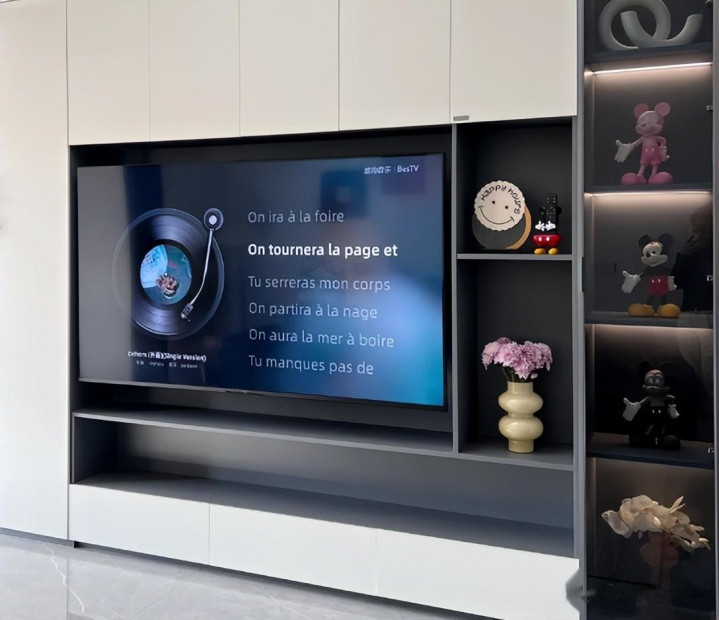 中心位置预留好你家装的电视机尺寸,后期把电视嵌入到里面即可。