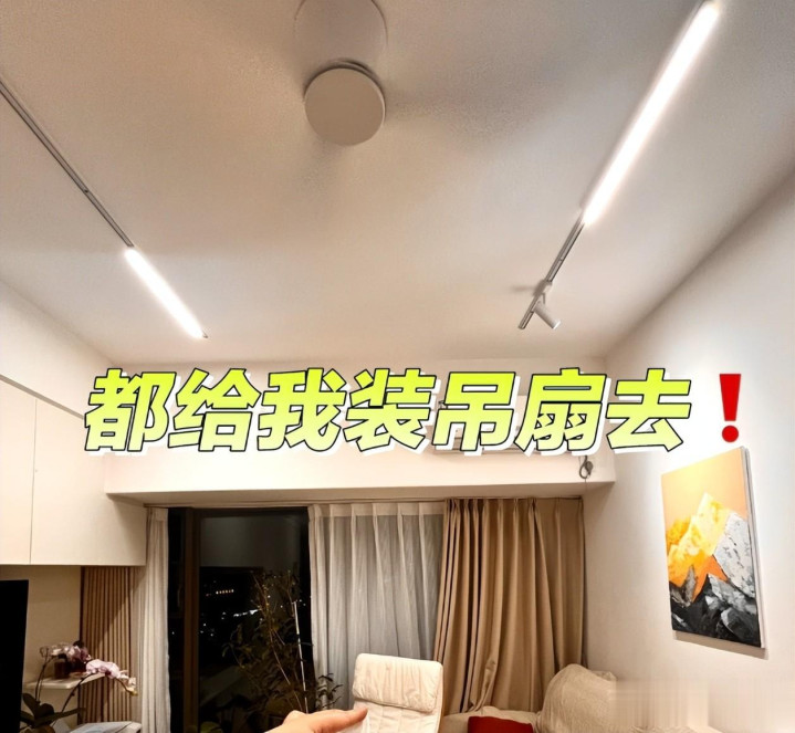 可我想告诉大家,吊扇并没有完全淘汰,年轻人又重新把吊扇利用起来,在客厅都装上了。