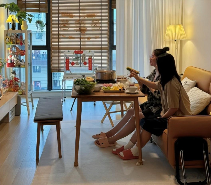 如果你想学这种做法,可以试试去做折叠餐桌,随用随放,移动也方便。